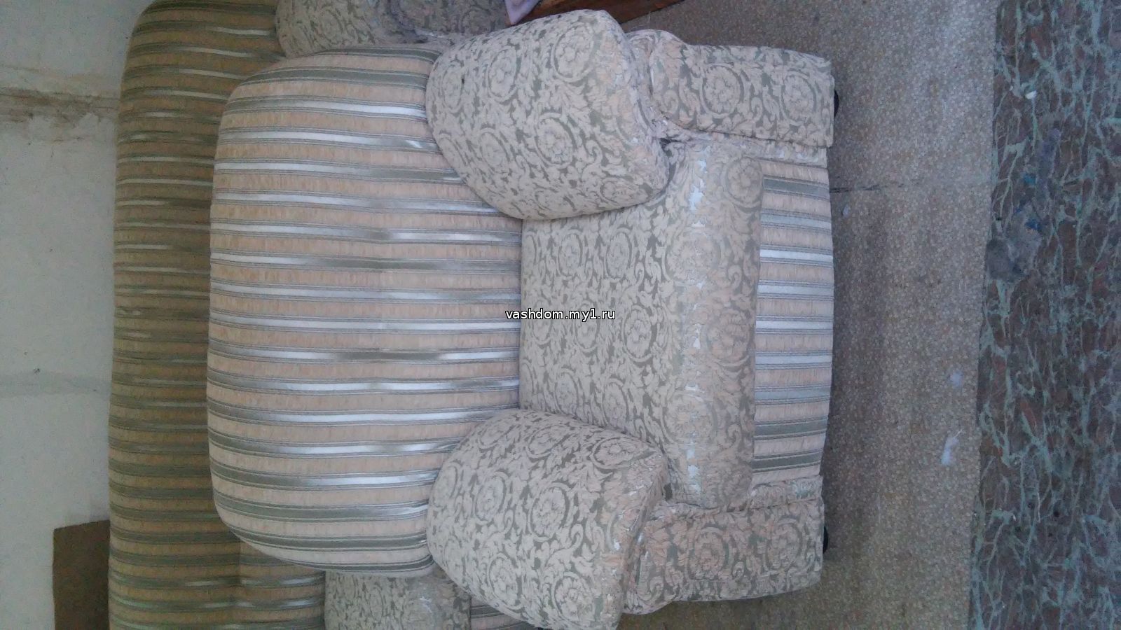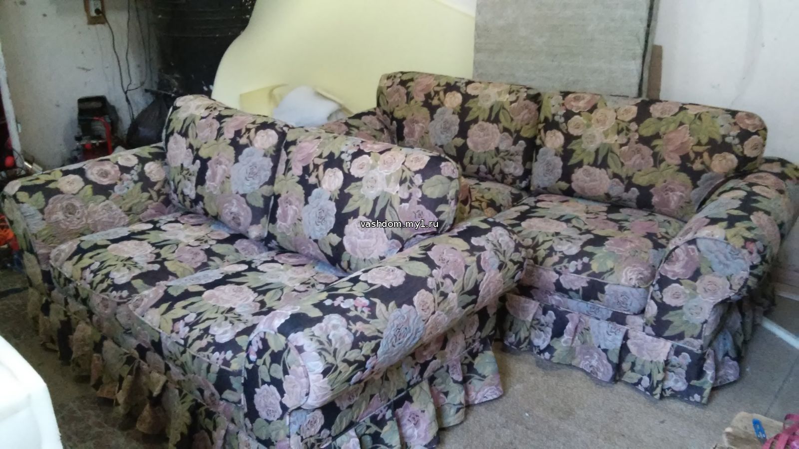 Поролоновые подушки обтянуты кож. заменителем.
